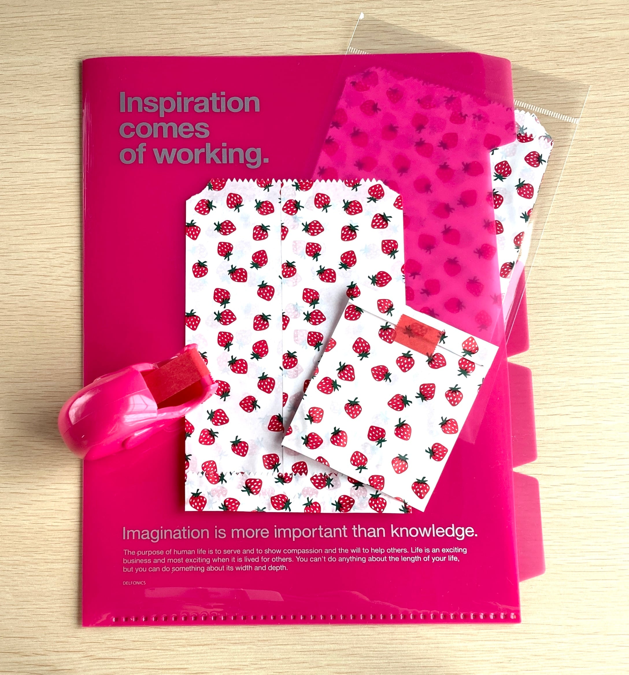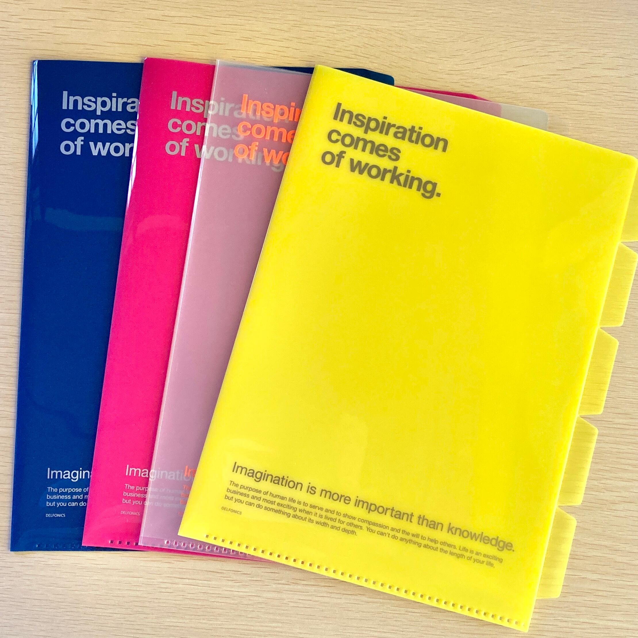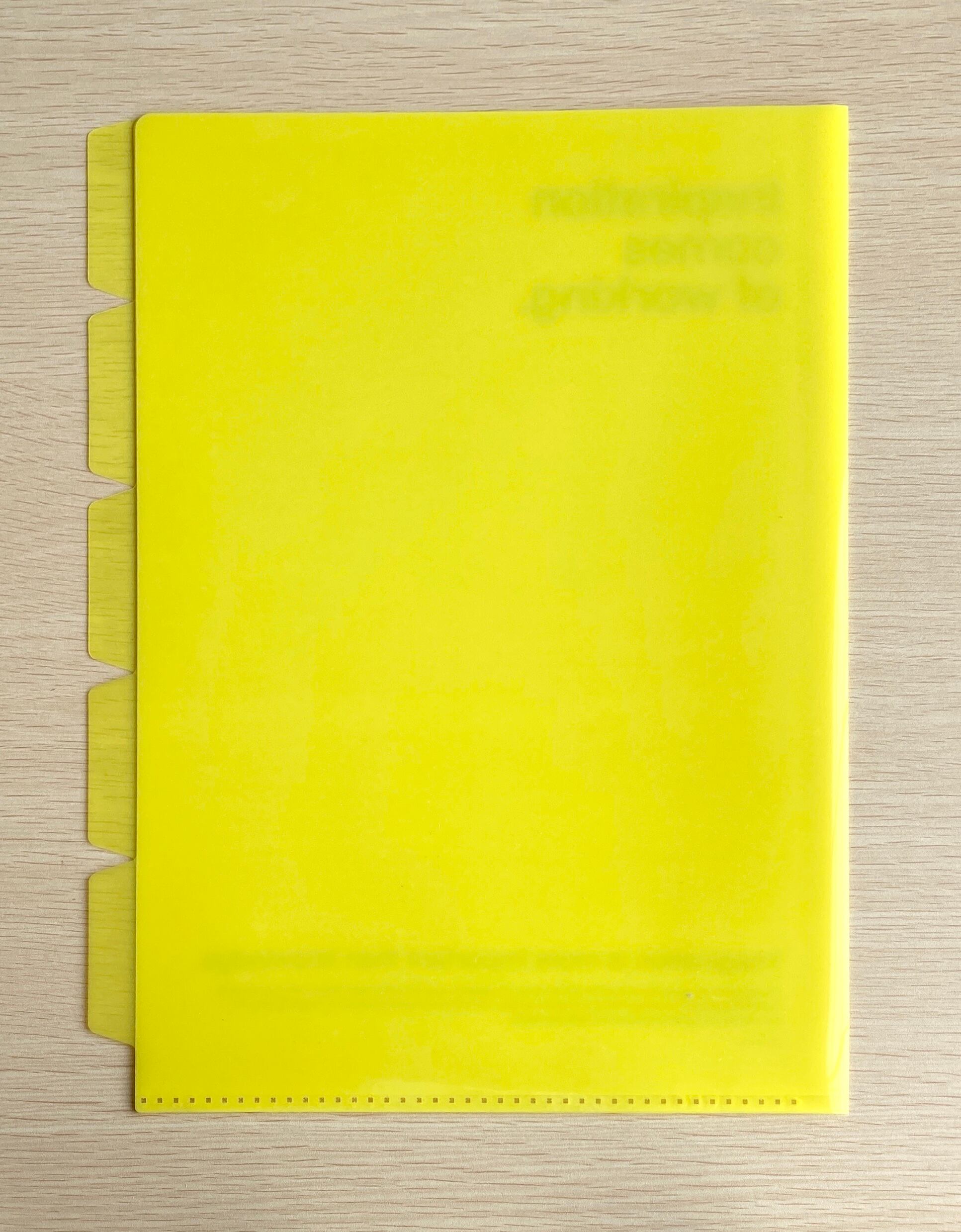 A4サイズの5パーツホルダーです。用途別にたっぷりと収納できます。ファイルのカラーとロゴのカラーのバランスがカッコよく、大人のクリアファイルといった感じ。クリアやイエローは中が少し透けて見えるので、柄物の紙を見せても可愛いです。使っていて元気になりそうなカラーバリエーションで大変な仕事も少し楽しくなりそう⁉︎