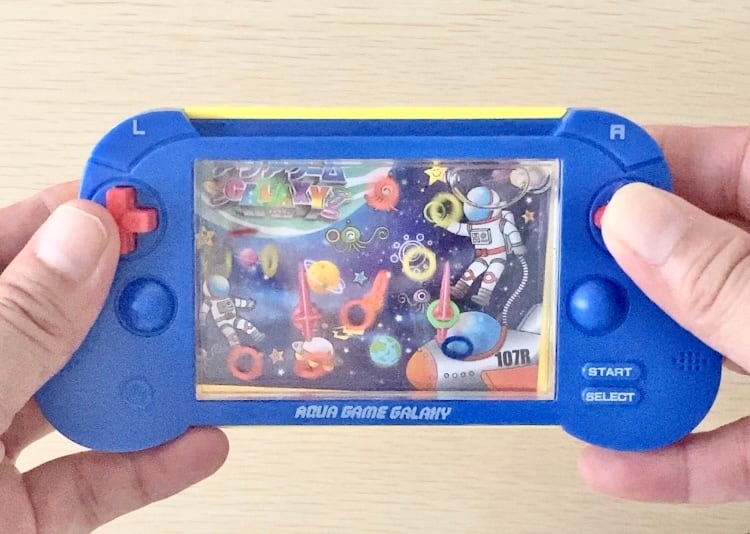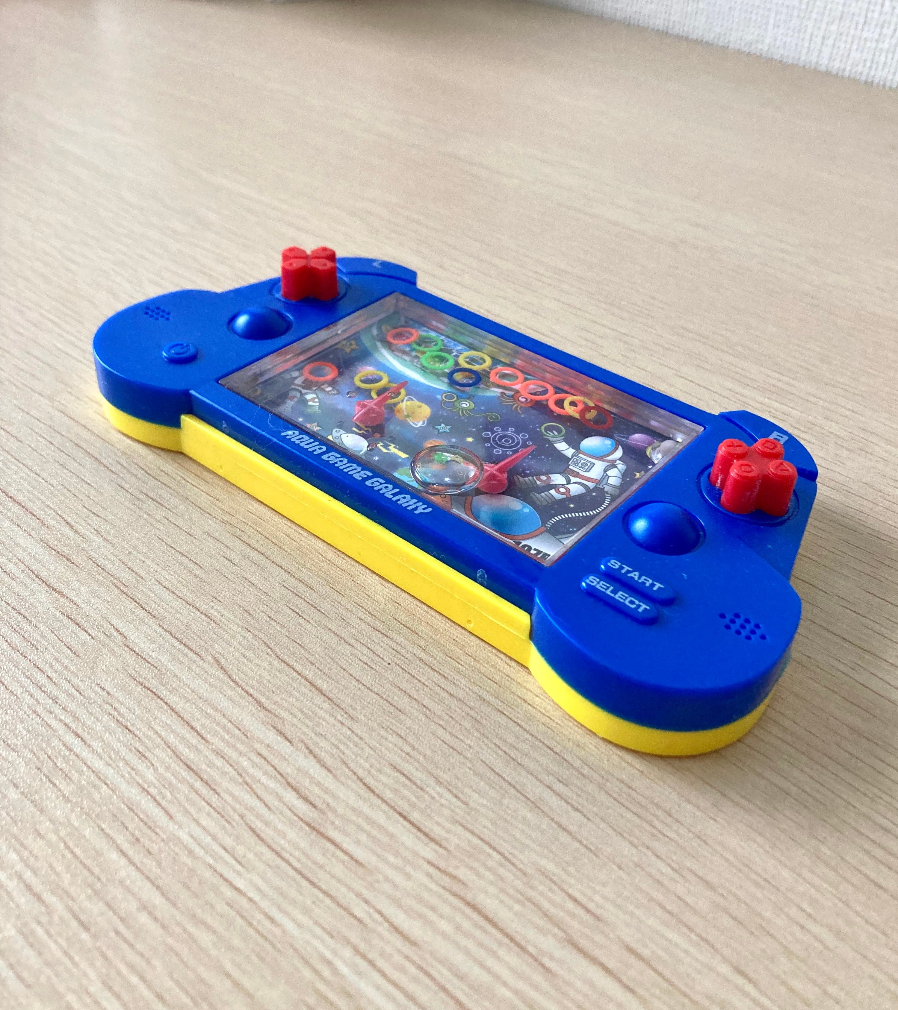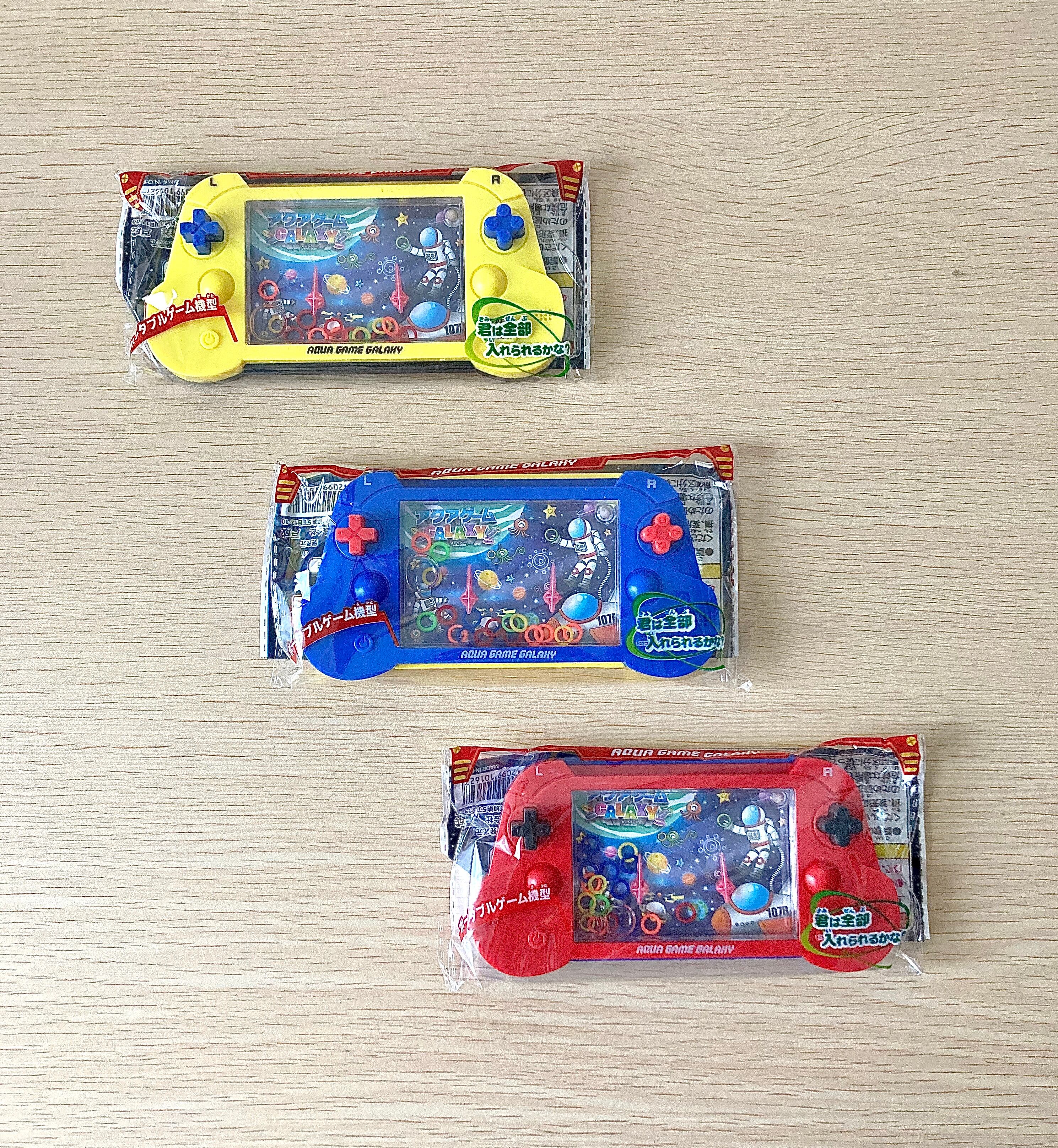 画面の中に液体が入っていて、左右のボタンを押すと空気が送り込まれ輪投げゲームが楽しめます♪ 色はイエロー、ブルー、レッドの3色。